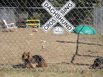 Hold up there chick-a-dees...are ya'lls gettin another tail? Oh please do tell...waiting! Please lett it be another doxie and please let it be a boy...I needs a bofuriend. I is sooo digging your sign. I saw a cool one online that had a doxe and tthens it said: Waring: I can get to my fence in.2 sec...how fast can you go...hehehe!Puddles